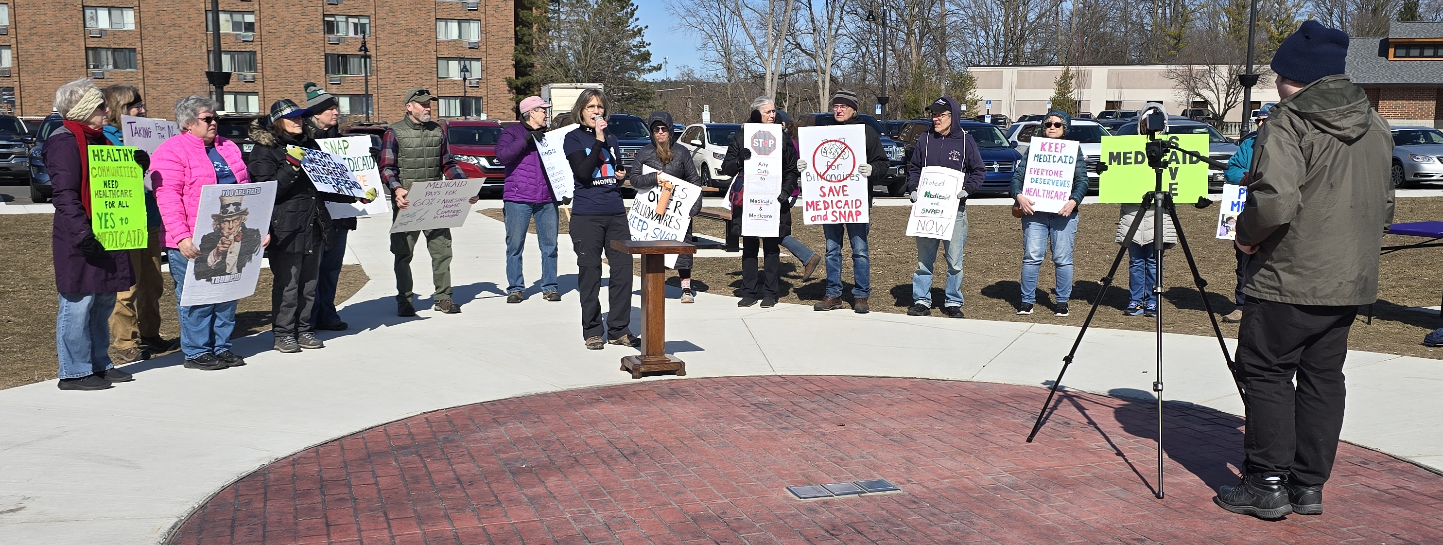 We meet every other Thursday at 6:30 pm at the Veteran's Memorial Library located at 301 S. University in Mt. Pleasant, MI. Our next meeting is November 6, 2025. We rally/protest every Saturday from 10:00 am - 12:00 noon at the corner of Mission St and Broadway (117 N. Mission). Our next rally is October 25.
